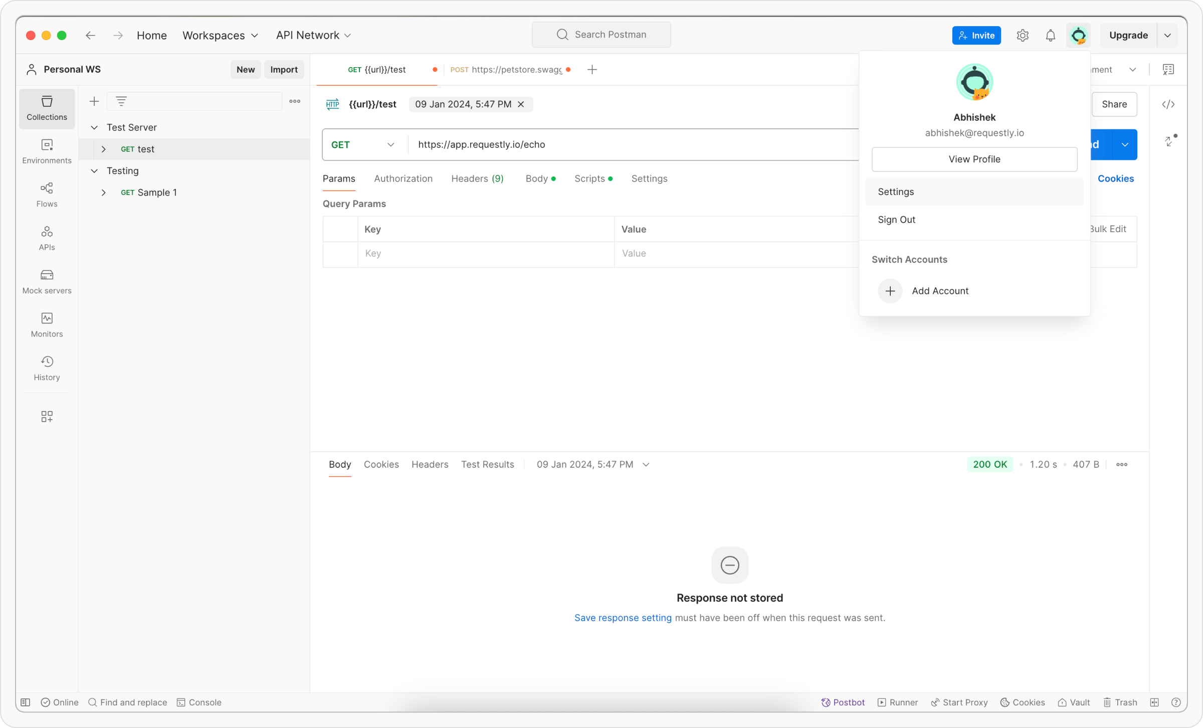 Step 1: Click your profile icon in the top-right corner of Postman and select Settings.
