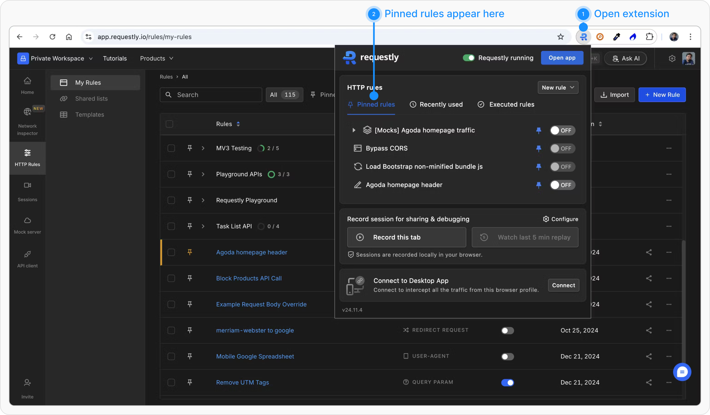 To pin a rule in Requestly, follow these steps:1