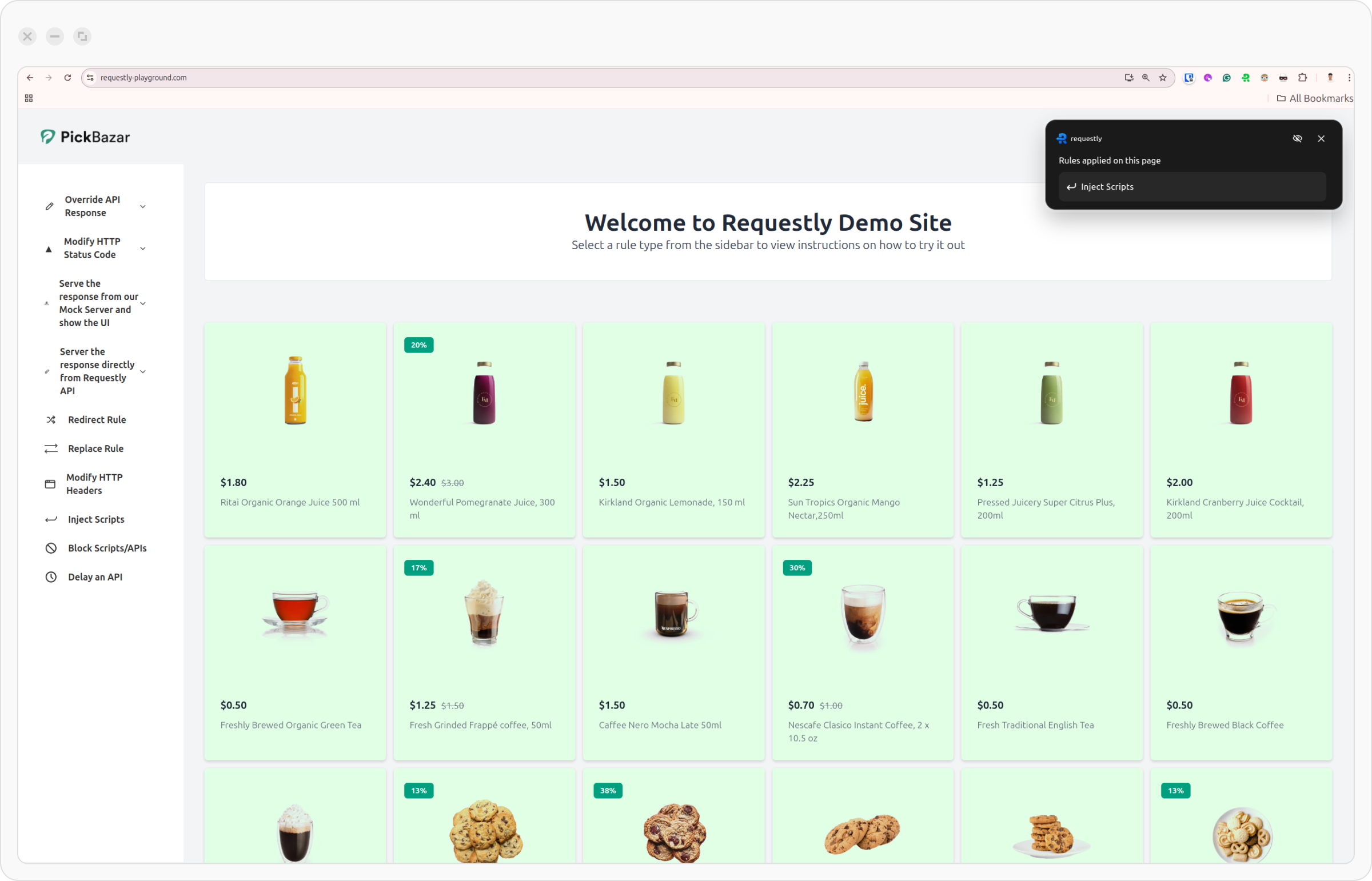This example targets any requests made to the Requestly Playground, ensuring the script is applied wherever the URL contains requestly-playground.com.